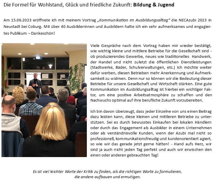 Vortrag auf der NEC-AZUBI 2023